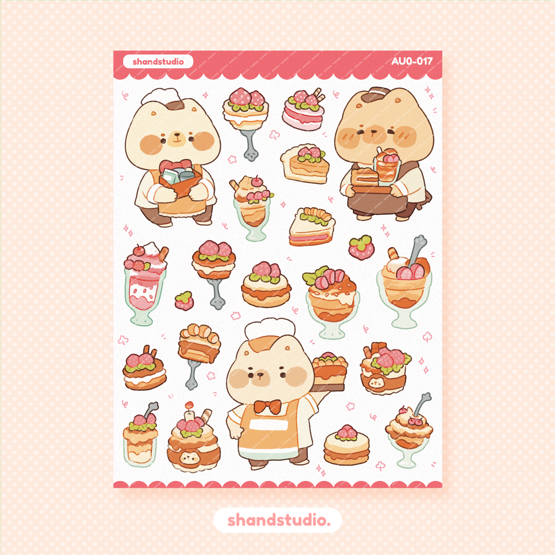Bear Pastries and Desserts Sticker Sheet